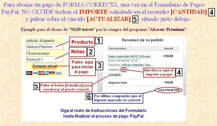 Ejemplo para el abono de "10,00 euros" por la compra del programa "Abacux Premium":